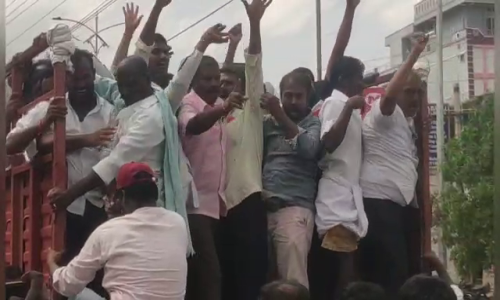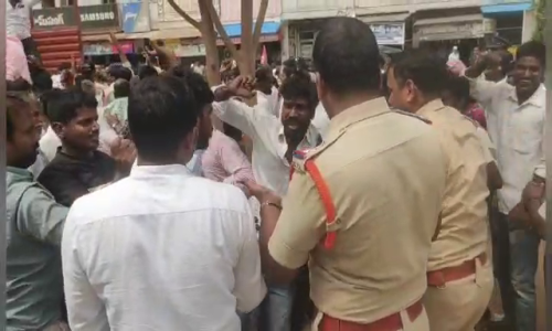 Abhi9 News - తెలంగాణ / నాగర్ కర్నూల్ : కల్వకుర్తి ఎమ్మెల్యే క్యాంపు కార్యాలయం ముందు బైఠాయించిన గట్టిప్పలపల్లి గ్రామస్థులు, తలకొండపల్లి మండలం లోని గట్టిప్పలపల్లి గ్రామాన్ని మండల కేంద్రంగా ఏర్పాటు చేయాలని డిమాండ్, దాదాపు రెండున్నర గంటల పాటు నిరసన అరెస్ట్ చేసి వదిలేసిన పోలీసులు. నాగర్ కర్నూల్ జిల్లా కల్వకుర్తి ఎమ్మెల్యే క్యాంపు కార్యాలయం ముందు తలకొండపల్లి మండలం గట్టిప్పలపల్లి ప్రజా ప్రతినిధులు గ్రామస్థులు ట్రాక్టర్ల పై ర్యాలీగా వచ్చి తమ గ్రామాన్ని మండలం గా ప్రకంటించాలని నిరసన చేపట్టారు, దాదాపు మూడు గంటల పాటు ఎమ్మెల్యే వస్తాడని వేచి చూసారు రాకపోవడంతో, ఫోన్ లో మాట్లాడి నచ్చజెప్పే ప్రయత్నం చేసినా వినకపోవడం తో పోలీసులు వారిని అక్కడినుంచి తరలించే క్రమంలో కొంత ఉద్రిక్తత చోటుచేసుకుంది, గ్రామస్థులు మాట్లాడుతూ :- కొత్త జిల్లాలు మండలాలు ఏర్పాటు చేసినప్పుడు తమ గ్రామాన్ని మండలం గా ఏర్పాటు చేయాలని కోరగా పట్టించుకోలేదని, తమకు మండలం బ్యాంకు చాలా దూరంగా ఉండడం వల్ల ఎన్నో ఇబ్బందులు ఎదుర్కొంటున్నామని ఈ మధ్య 39 రోజులు గ్రామస్థులు దీక్షలు చేపడితే ఎమ్మెల్యే ఈ సారి ప్రభుత్వం ఏర్పాటు చేసే కొత్త మండలాల్లో మీ మండలం ఉంటుంది అని హామీ ఇచ్చి ఎమ్మెల్యే దీక్షలు విరమింపచేసి నియోజక వర్గం లో ఇర్విన్ ను మండలం గా ప్రకటించి ఎమ్మెల్యే మాటతప్పారని మండిపడ్డారు.